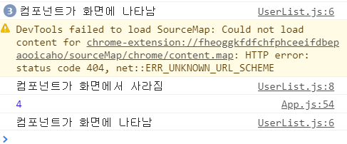 function User({ user, onRemove, onToggle }){ const {username, email, id, active} = user; useEffect(() => { console.log('컴포넌트가 화면에 나타남'); return () => { console.log('컴포넌트가 화면에서 사라짐'); } }, []); return (
