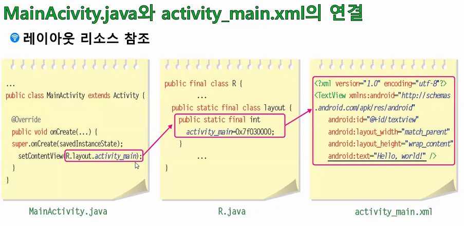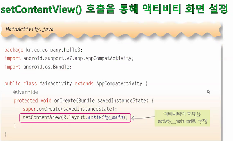 안드로이드에는 main() 메소드가 없고 액티비티 별로 실행됨