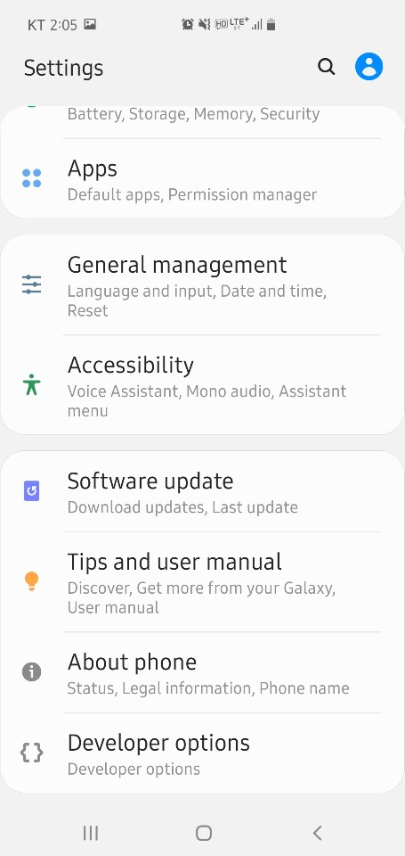 빌드 넘버를 터치하고 설정으로 나와서 맨 밑을 보면 개발자 설정이라는 항목이 생겨있다.