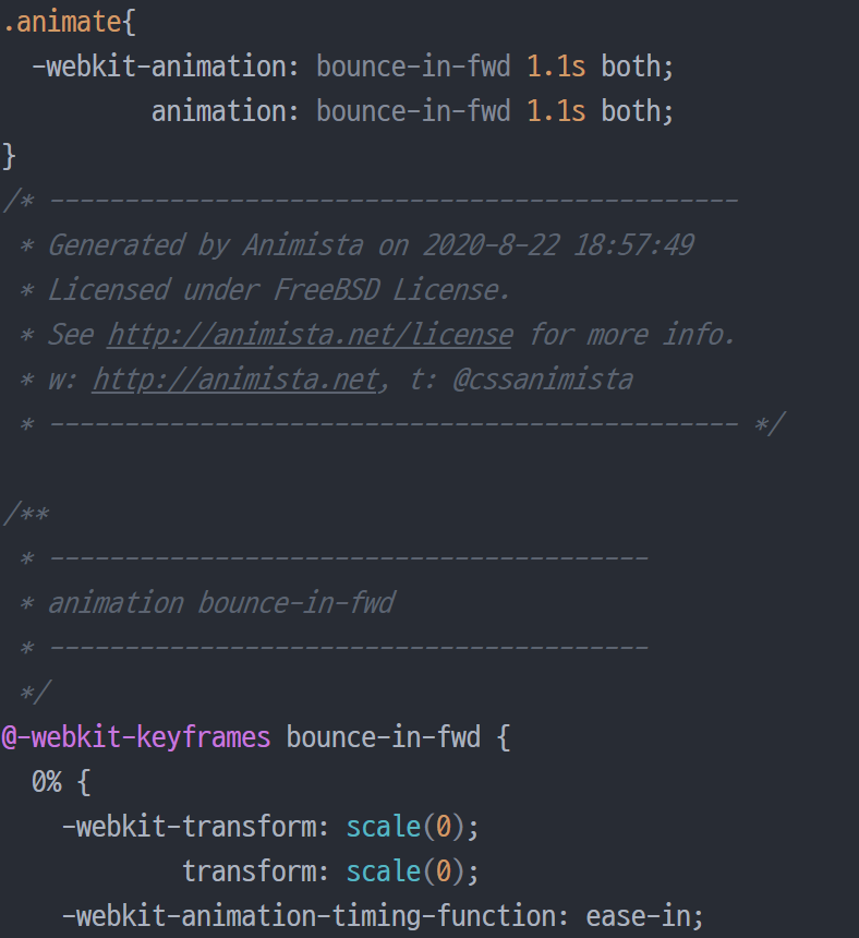 CSS에서 animate라는 클래스에 애니메이션 설정