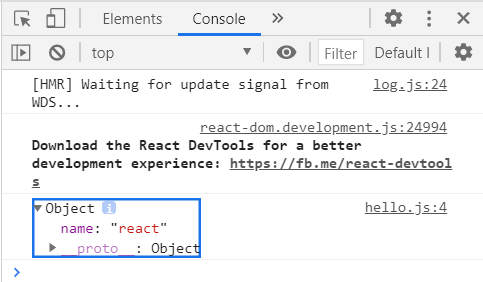 import React from 'react'; // import logo from './logo.svg'; // import './App.css'; import Hello from './hello'; function App() { return ( <Hello name="react"/> ); } export default App;2. hello.js 에 파라미터로 props를 사용하고 콘솔로그에 찍어보면