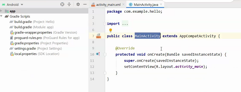 - AppCompatActivity는 Activity 클래스의 자식 클래스 -> 따라서 Main Activity 클래스도 Activity