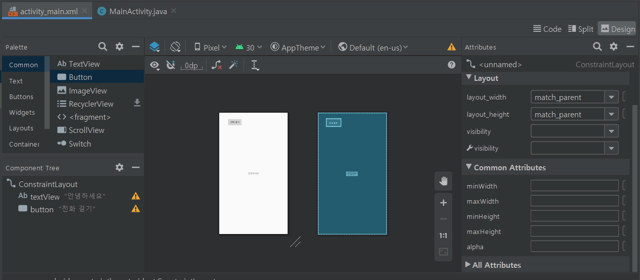 Android - 비주얼 도구 사용(전화 버튼 만들기)Android Studio 2020. 9. 9. 14:57