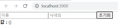 const onReset = () => { setInputs({ name: '', nickname: '', }); nameInput.current.focus(); }5. 결과